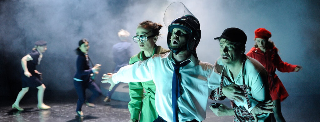 While Peter Handke’s 1992 original, The hour we know nothing of each other, had around three hundred silent characters move across the stage with exact directorial instruction, Nico and the Navigators use only eight performers, to explore the absurd daily encounters in a heterogeneous society against the backdrop of rapid technological developments and the loss of thought through overstimulation.