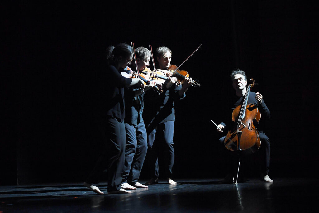 Mehrmals musste die Uraufführung der lange geplanten Performance „Force and Freedom“ wegen der Lockdowns abgesagt werden. Doch resignierten die Künstler nicht, sondern ließen stattdessen die Empfindungen, mit denen sie in der Isolation konfrontiert waren, in das Programm einfließen. Bei den Schwetzinger SWR Festspielen konnten die Zuhörer nun an der überaus fruchtbaren Zusammenarbeit des renommierten Streichquartetts und der 1998 gegründeten Kompanie teilhaben. Abwechselnd bekamen die Besucher Auszüge aus Beethovens Streichquartetten und Adaptionen von Lied-Fragmenten des Komponisten zu hören. Begleitet wurden die Darbietungen von Tanzeinlagen der aus Tokio stammenden Choreografin und Tänzerin Yui Kawaguchi. Dabei tauchten im Hintergrund an der Leinwand immer wieder Zitate Hegels auf.